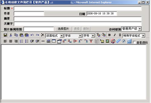 三、系統功能 信息創建、修改、刪除 四、成功案例 中聯科創 MO CMS 2011 網站內容管理系統經過多年的不斷升級完善,目前已成功的應用到眾多政府、集團、媒體、企業的網站或相關領域,他們包括: 長治市公安局、長治市工商局、長治市發改委、長治市中小企業局、長治市人大、城隍廟廣場、防爆集團、融匯通集團、山西省第二建筑設計院、百佳購物中心...... |